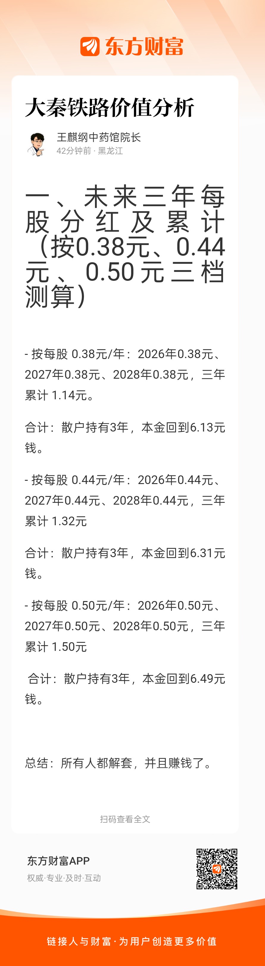 - 按每股 0.38元/年:2026年0.38元、2027年0.38元、2028年0.38元,三年累计 1.14元。