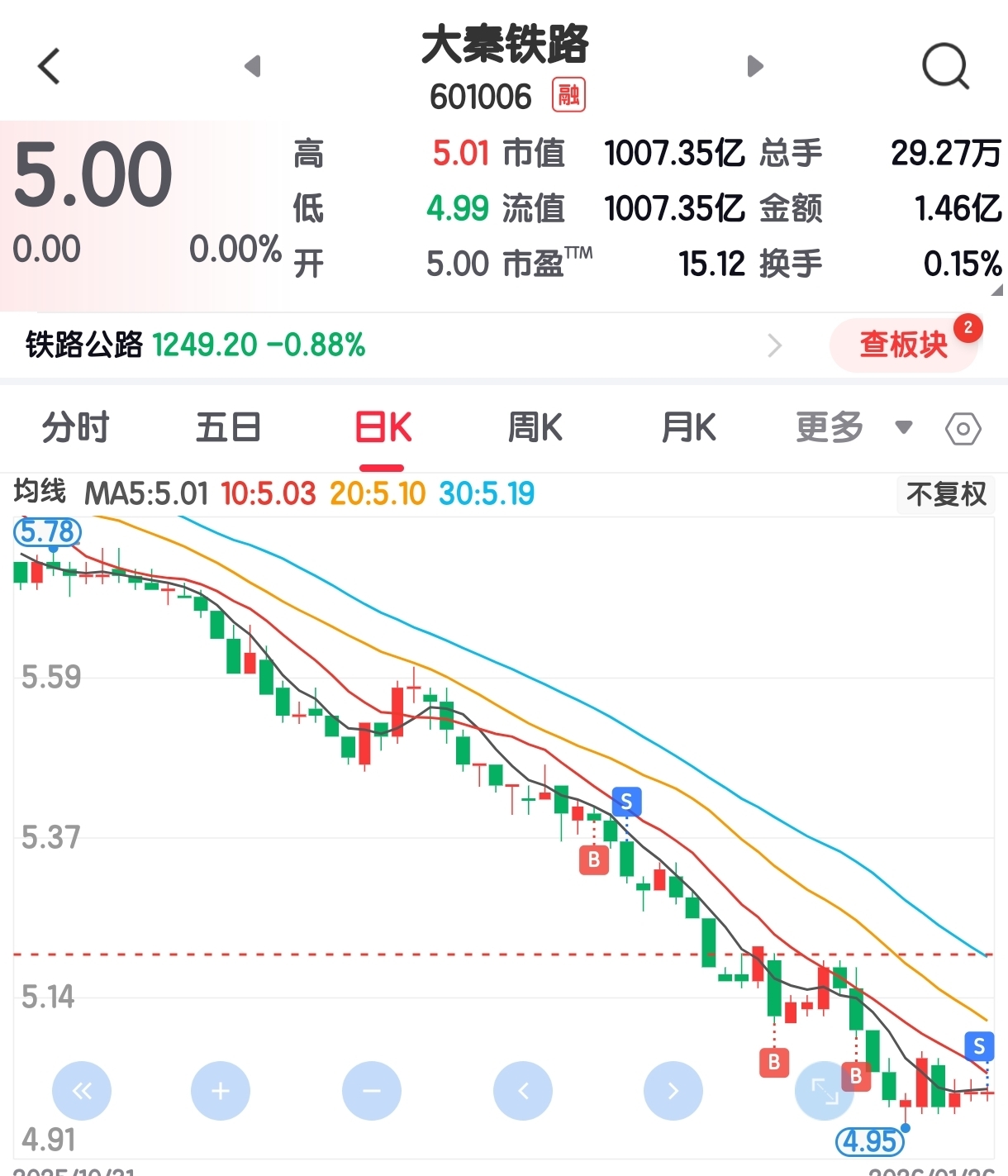 $大秦铁路(SH601006)$ 大秦铁路已早没有预期,聪明的大资金,在一直撤出。躺赚的时候已经消失。散户不要再看承接点了。左侧交易者,低吸技术派的坟墓。我是左侧交易者,他是我的大坑。大资金流出,让你做t的机会都没有,赶紧跑吧。