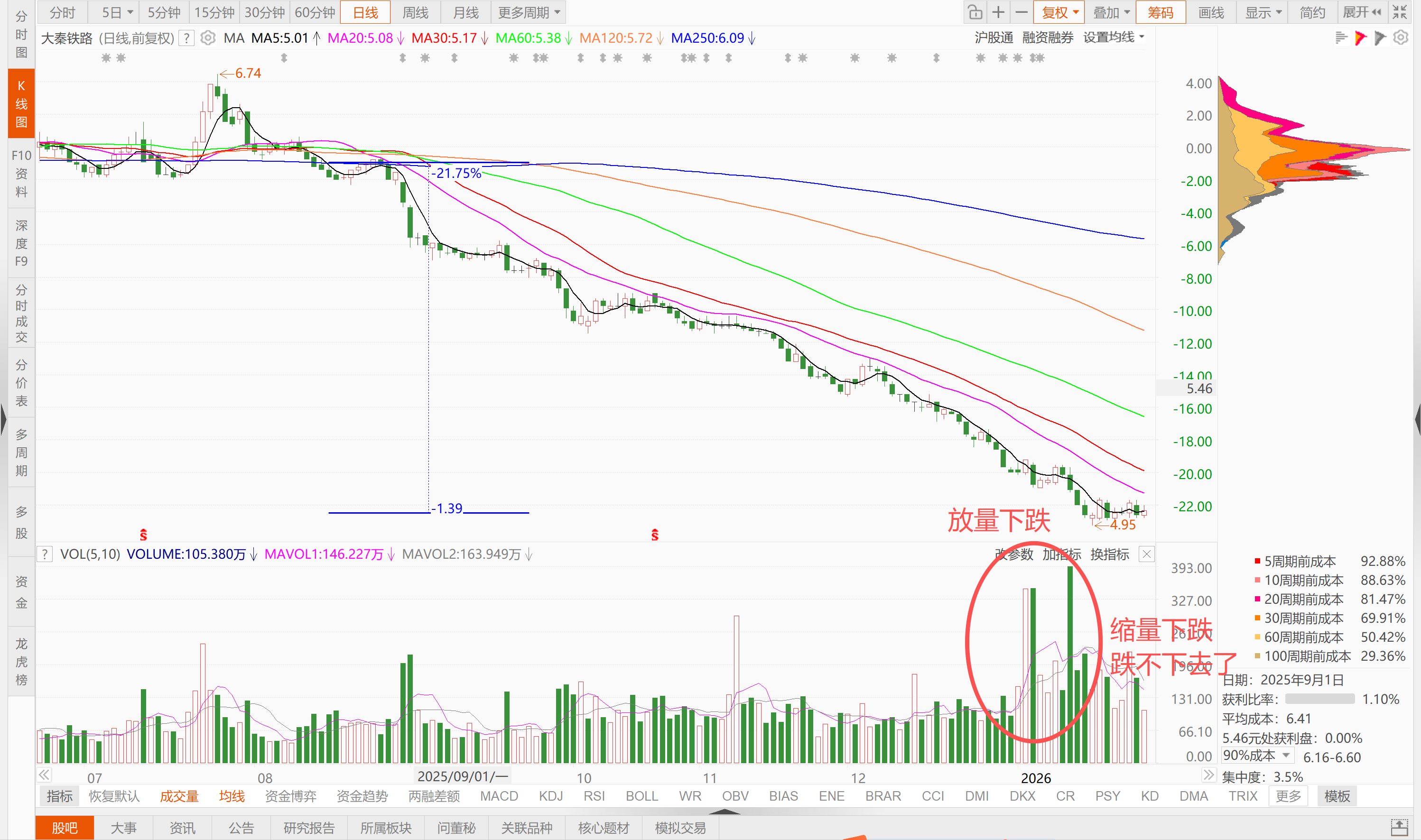 该股要反转了,从高点下跌下来,大概20个点。现在是放量下跌,然后缩量调整。跌不下