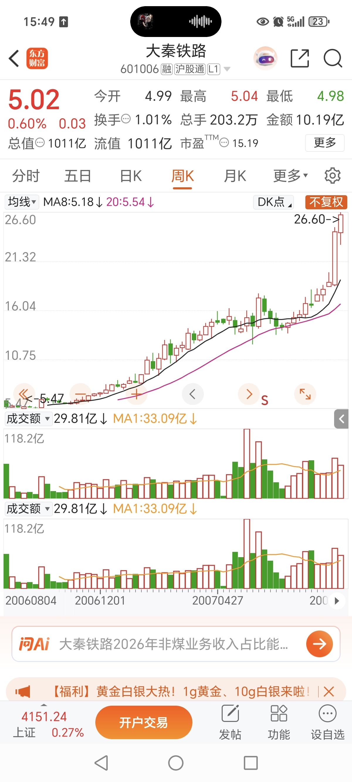$大秦铁路(SH601006)$ 大秦也曾有过辉煌的牛市