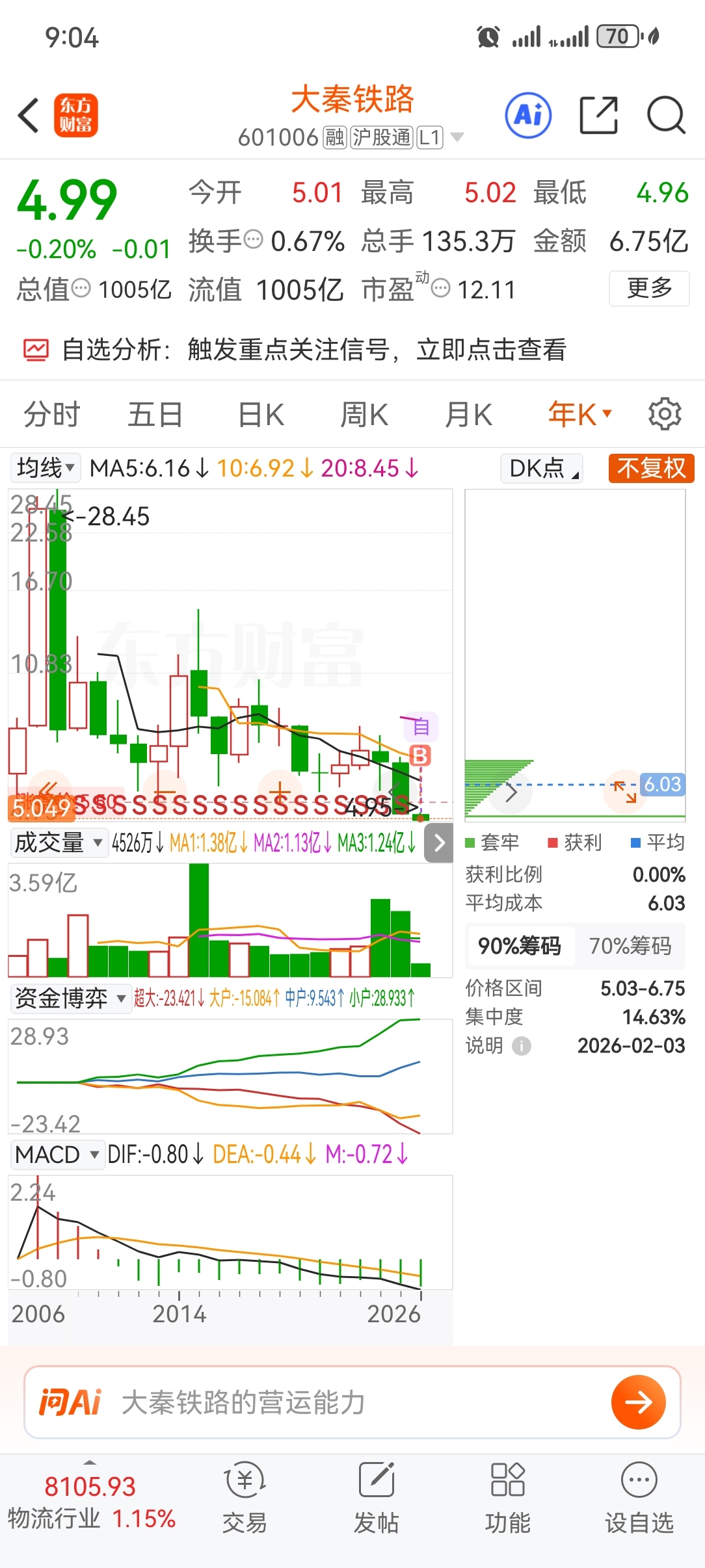 $大秦铁路(SH601006)$ 躺平,每个月发工资补1000股,先买到2026年底。