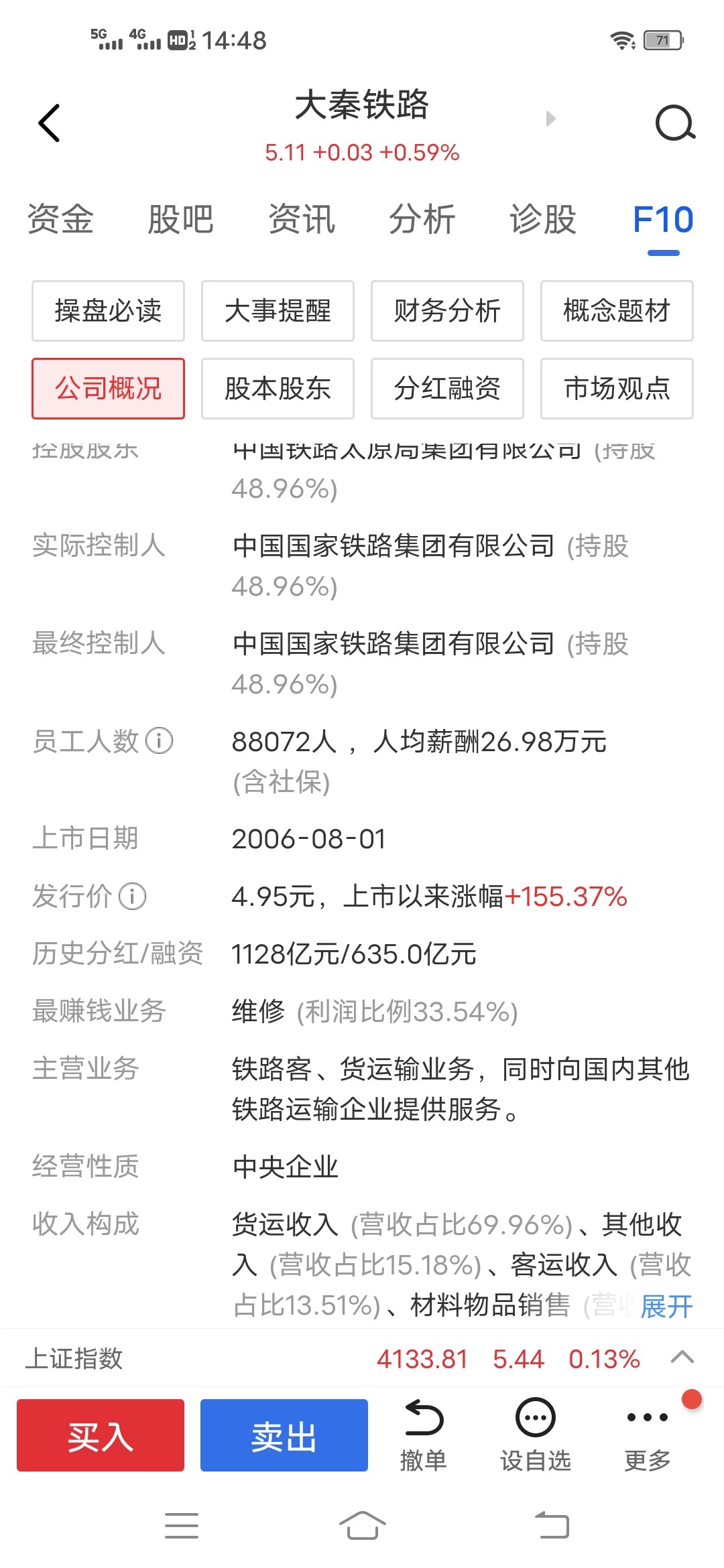 $大秦铁路(SH601006)$ 5.95是发行价,大家成本一样,这么大盘子,感觉不会破发了