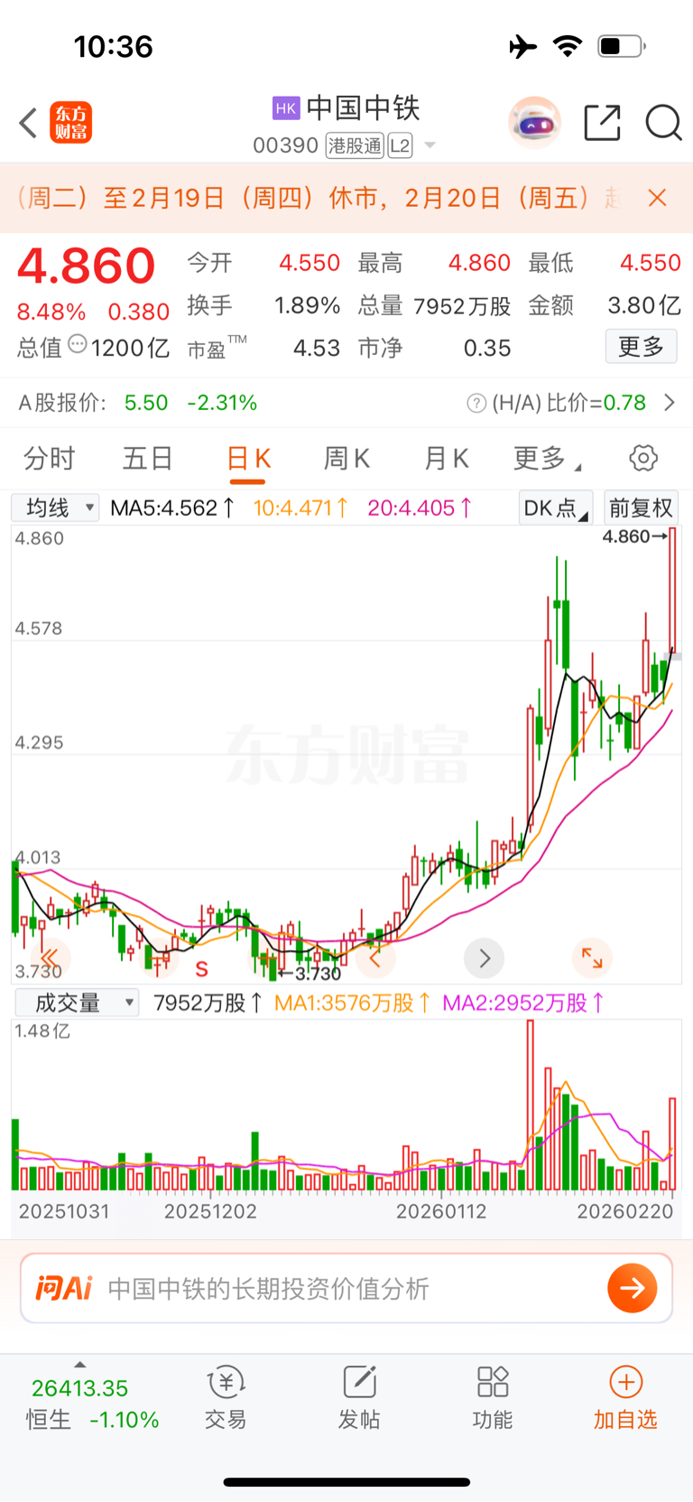 $大秦铁路(SH601006)$ 港股中国中铁大涨,给大秦铁路指明方向