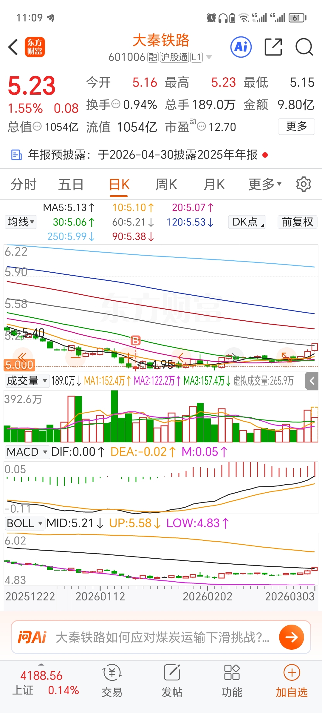$大秦铁路(SH601006)$ 加油!你行的