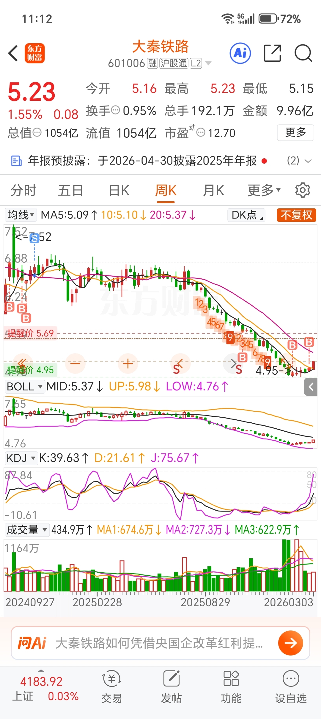 $大秦铁路(SH601006)$ 一点点耐心一点点勇气一点点目标