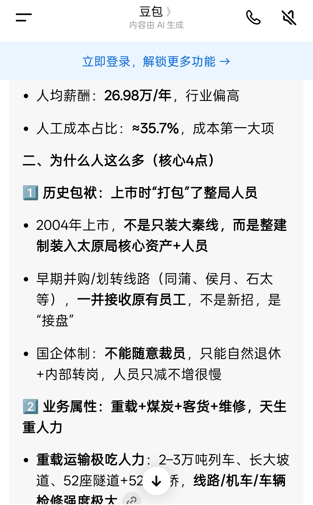 豆包说大秦养着太原局的工人??