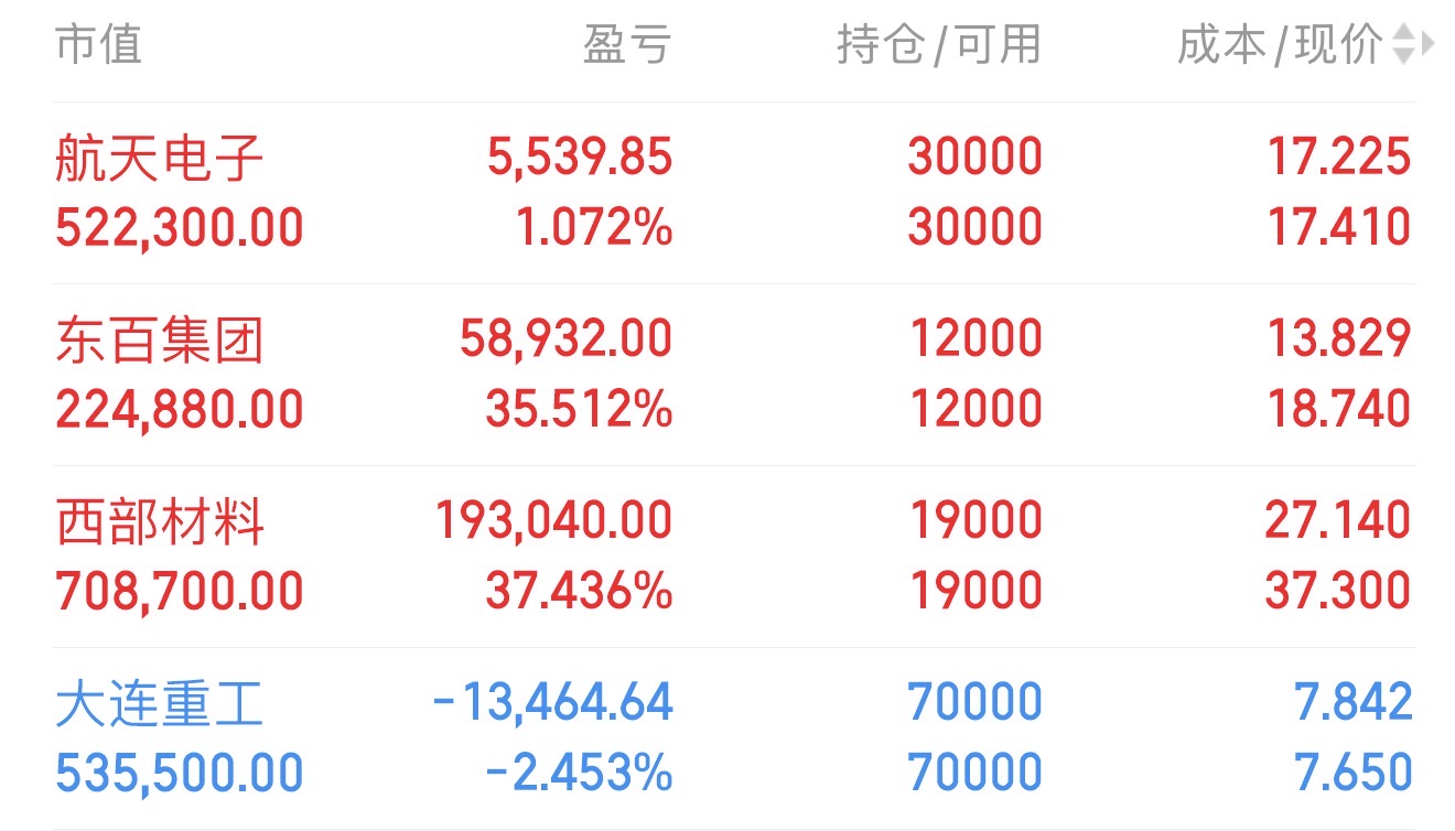昨天的下砸是已经脱离板块了,开始跟着高标有一致性了,普遍的下砸,但是承接很好,尾盘才收绿一个点。各种有色金属、小金属还有贵金属都在涨,连黄金也都突破新高了,金属这波史诗级行情太强势了,沉寂多年的蓄力,西部材料毕竟是做金属加工和生产的,主力不可能蠢到这个时候出货,而且还是板块人气龙,题材和情绪都有,今天策略最差就算洗盘到深水都不出,要是直接走强最好,早早关注跟这标的战友估计都听腻了,因为这37个点大肉就是这么耐心等出来的,余哥再三确认这标没到顶,新战友现在跟上,一定还有肉吃。$西部材料(SZ002149)$