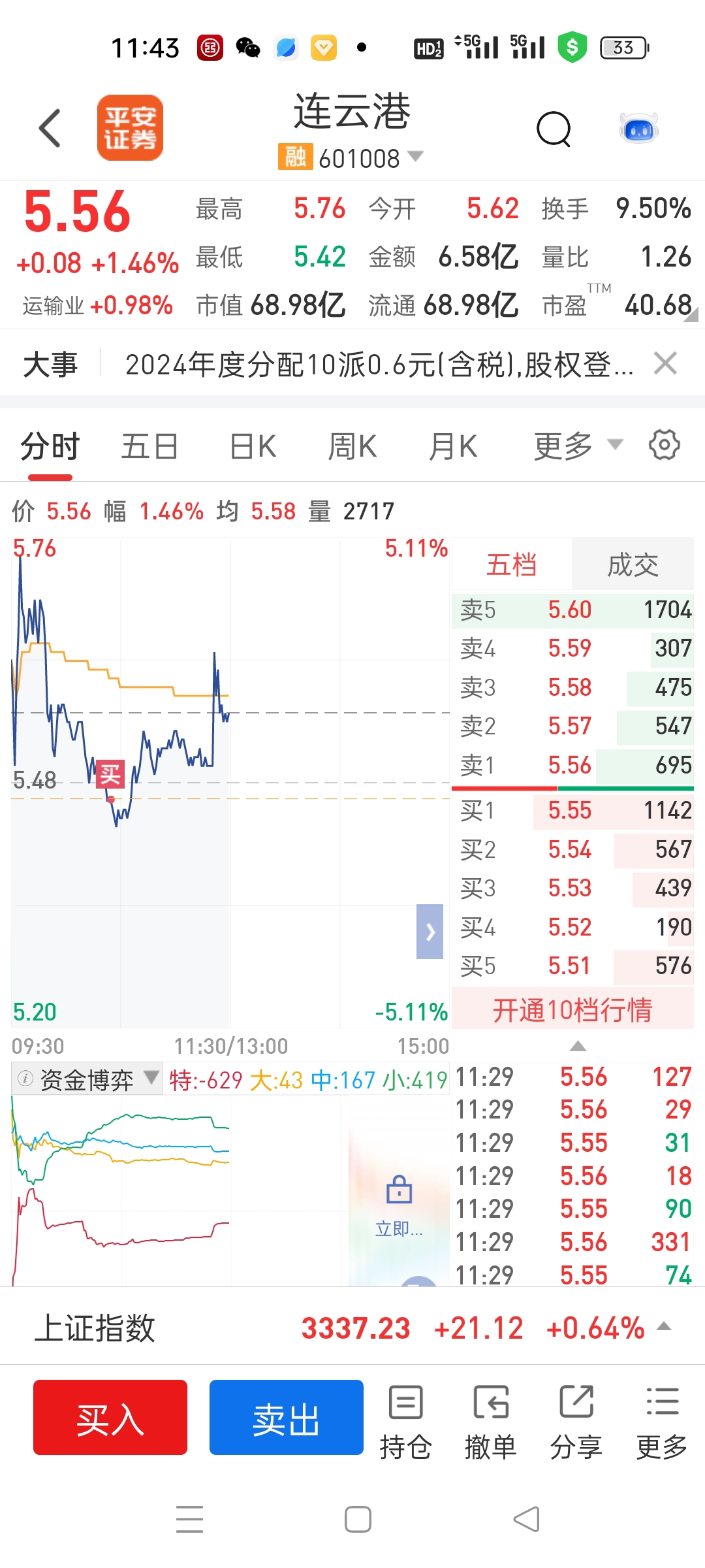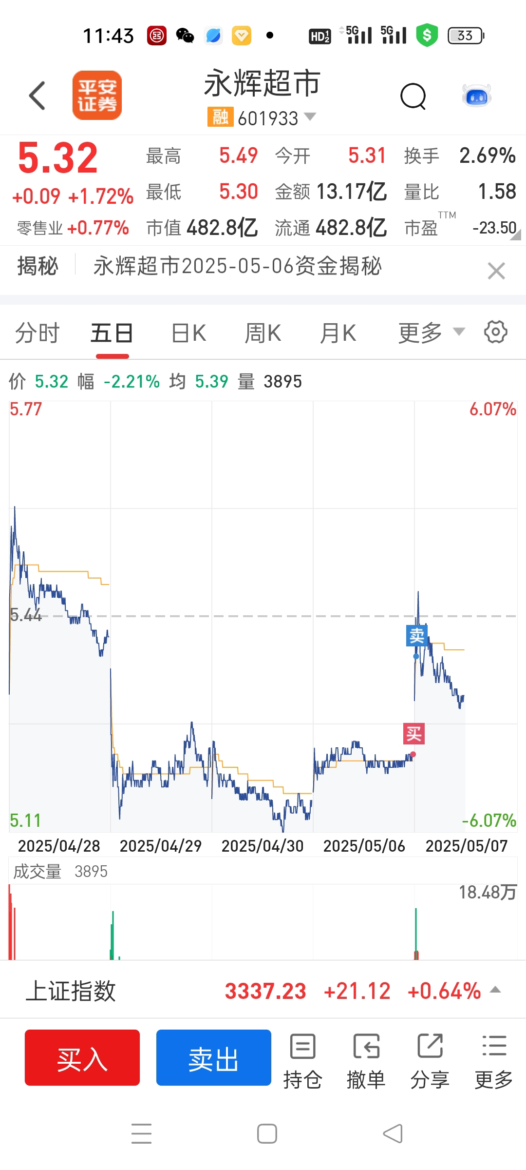 开市卖了永辉,贝因美,低位连云购入,看他下午表演