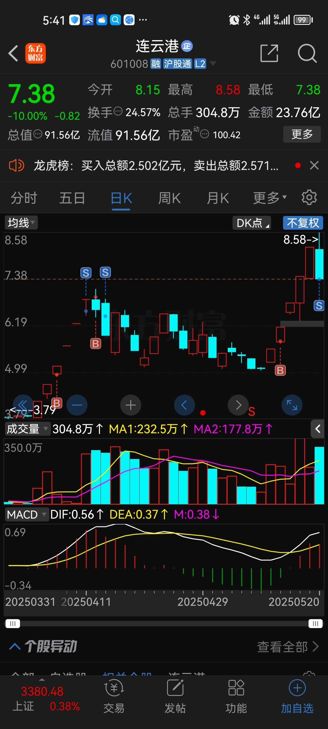 $连云港(SH601008)$ 赚到就好
