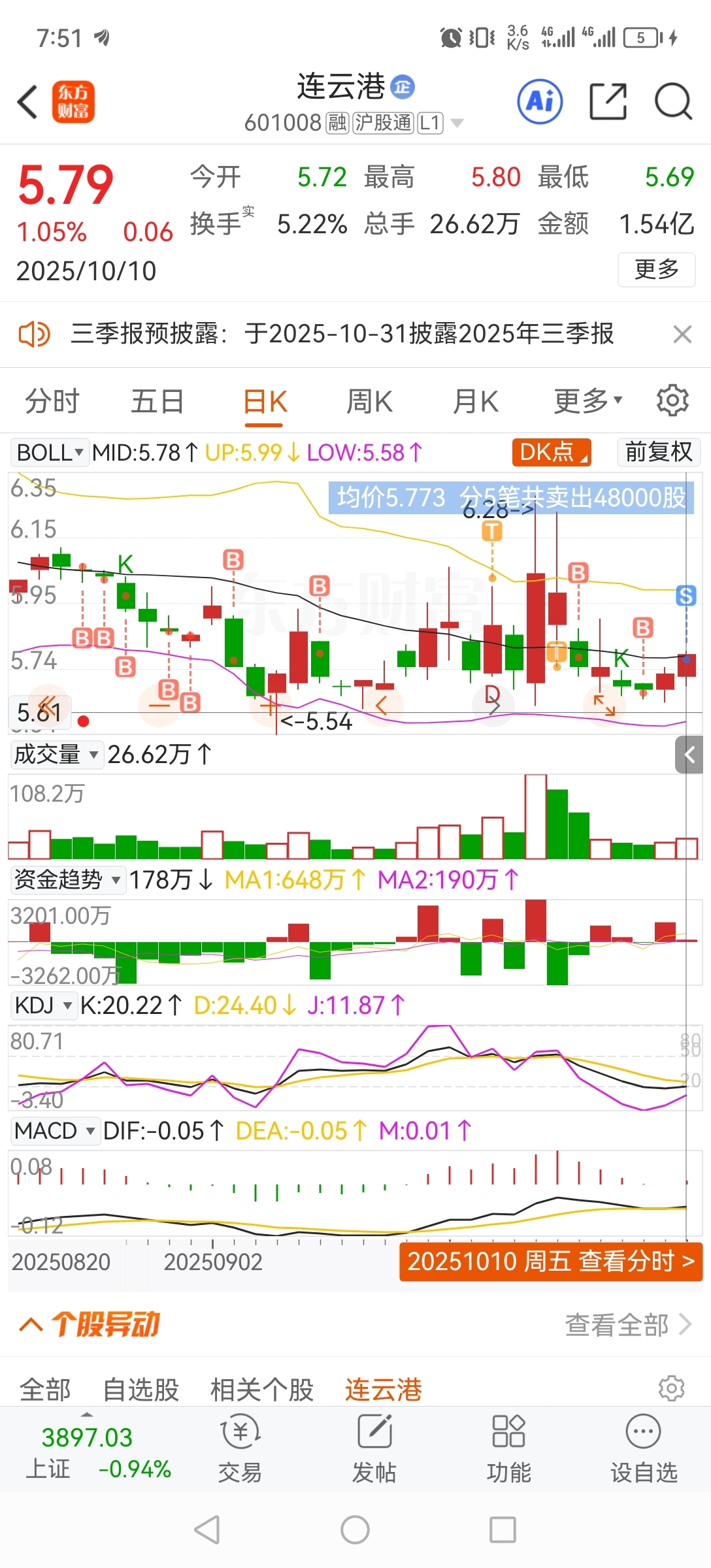 $连云港(SH601008)$ 我也不知道走了对不对哦,上上上周就预判了10.13号11.30是跌得