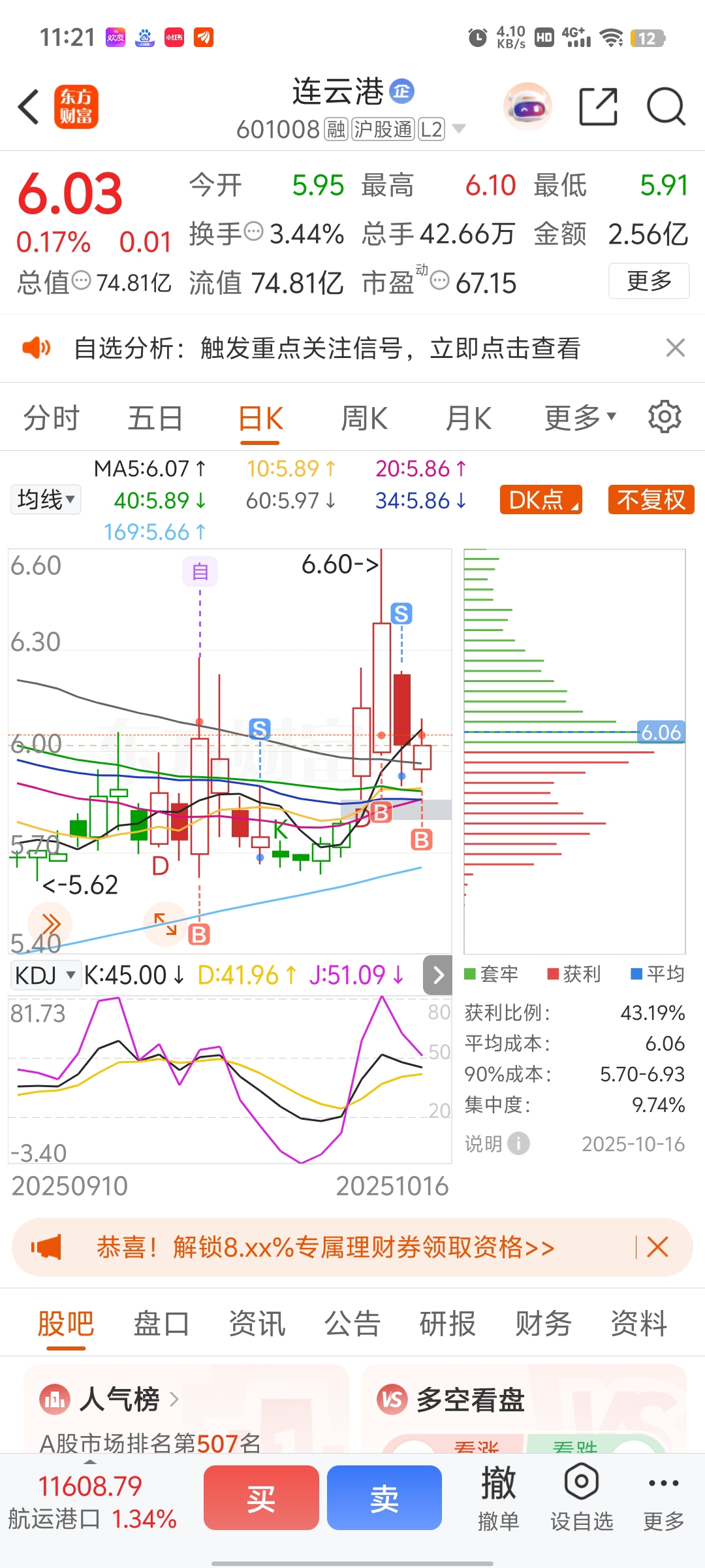 $连云港(SH601008)$ 完美的高买低卖,这次再让我亏我就删自选了