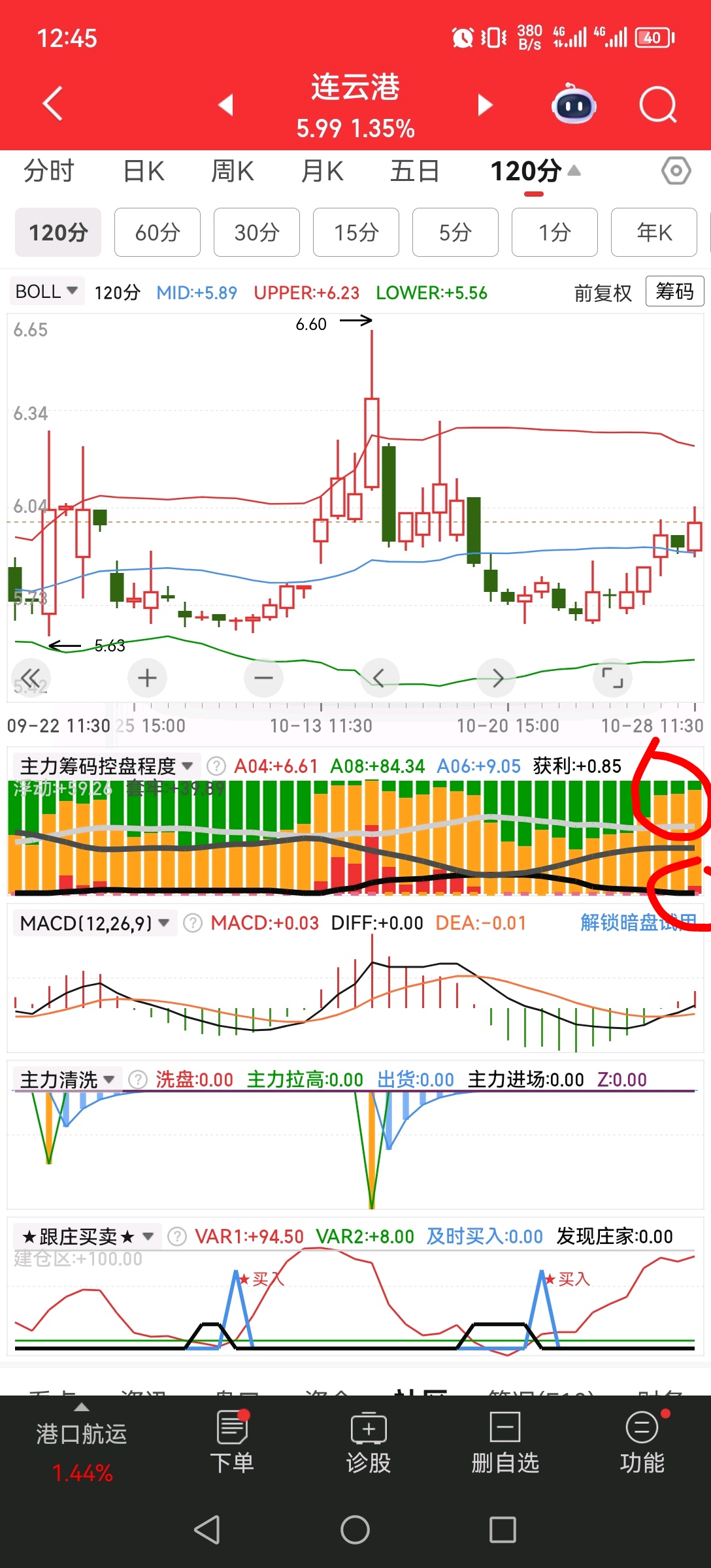 由于目前是按照120分时周期看那么就以120的指标数据做解读,虽然现在是站上了上轨,不过从kdj看处于超买趋势,容易有获利盘出逃,目前庄/大户在买入,主力只买了一小部分,散户是不敢买的