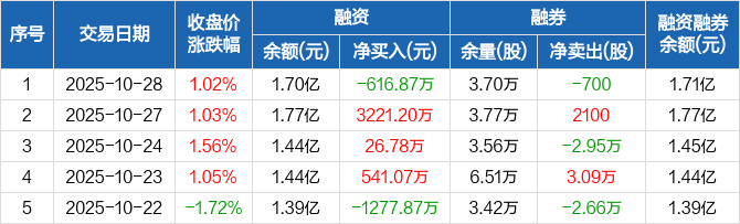 连云港:融资净偿还616.87万元,融资余额1.7亿元(10-28)