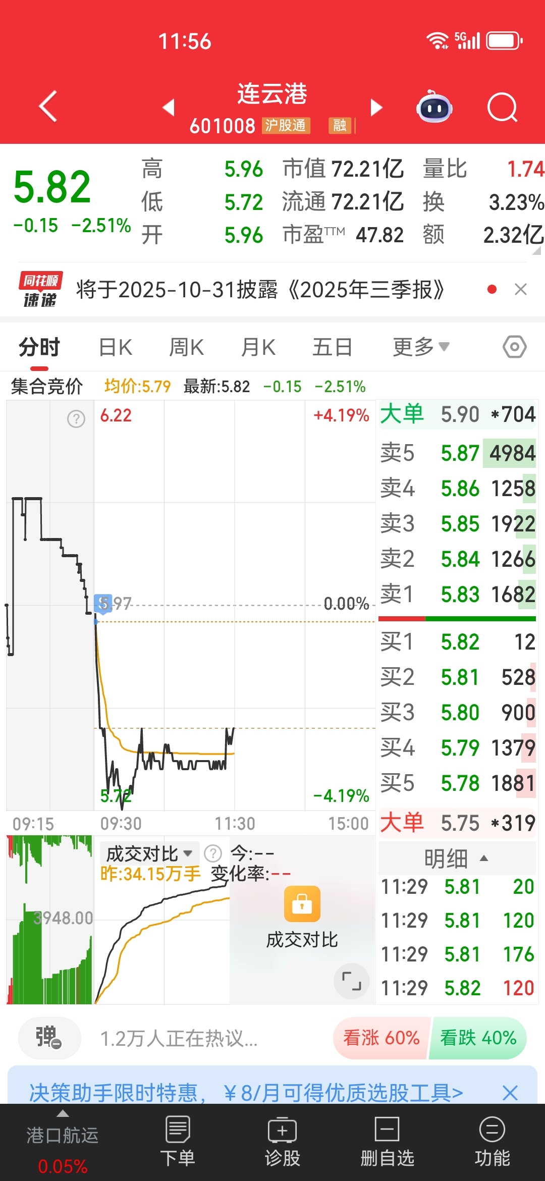 $连云港(SH601008)$ 对不起,我砸的