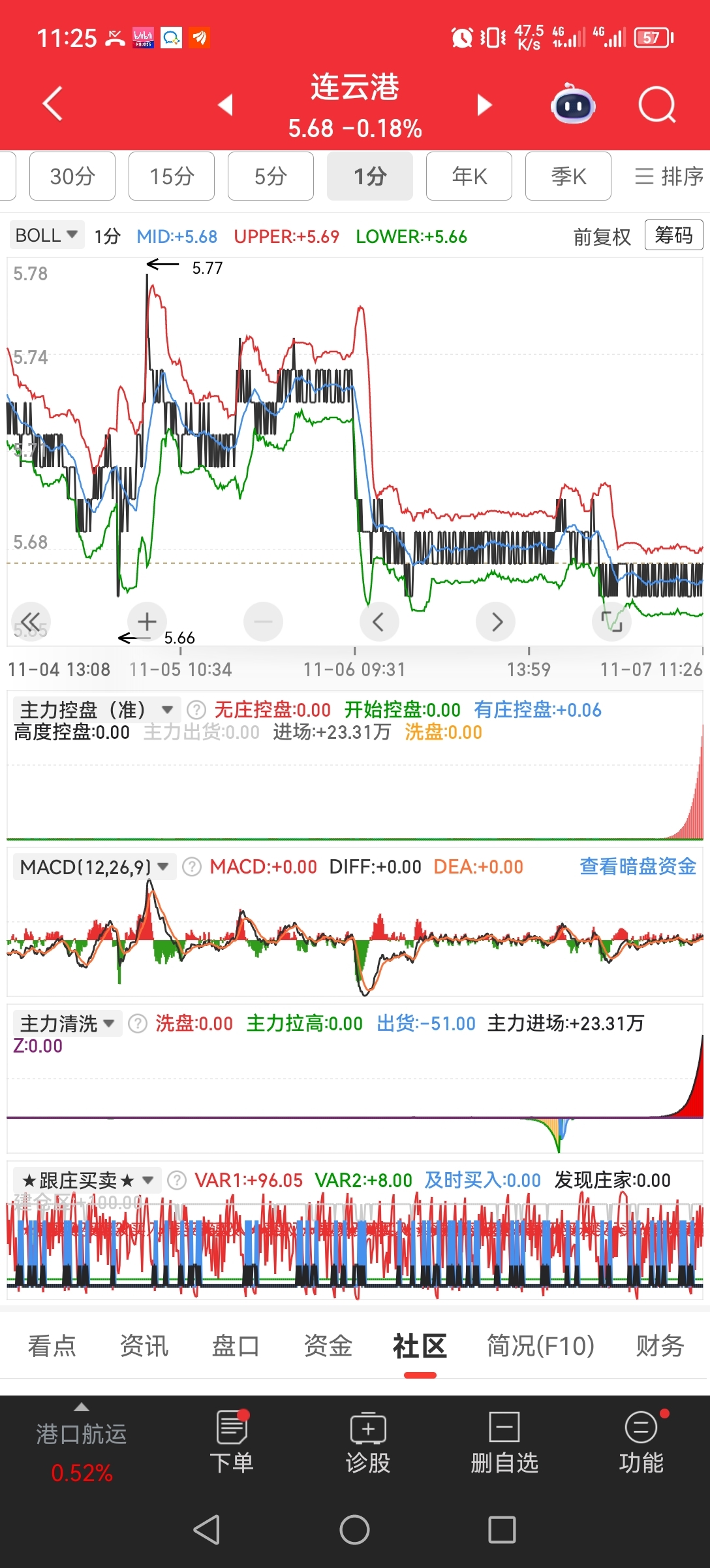 $连云港(SH601008)$ 今天是7号也是低位最后一天了主力开始动作了,一般中午低吸是好事,尾盘竞价低吸是砸盘,希望没错