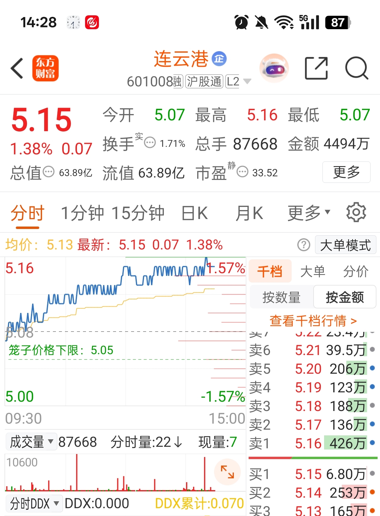 $连云港(SH601008)$ 卖1压得426万,明显是不想涨的节奏,无奈了也是