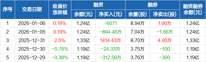 连云港:融资净偿还6071元,融资余额1.24亿元(01-06)