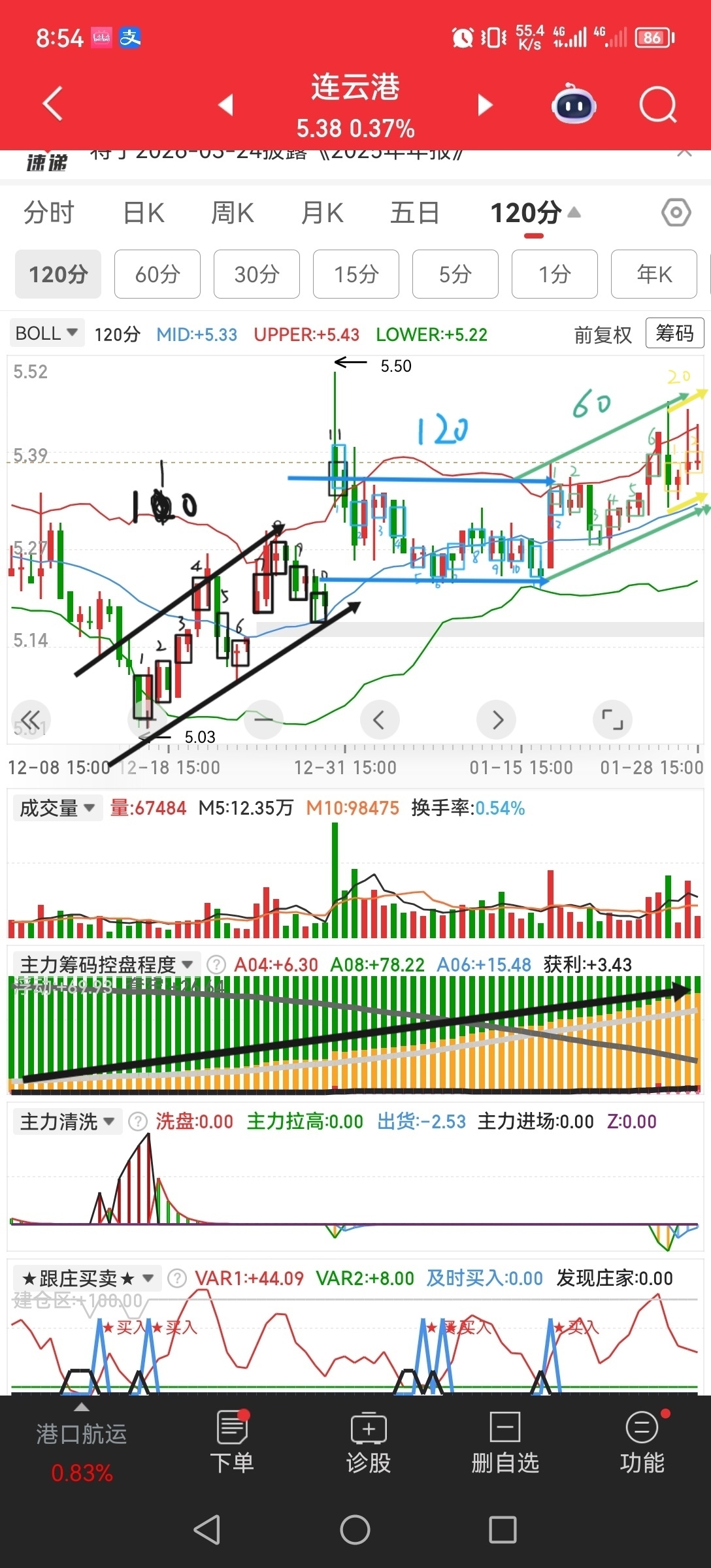 $连云港(SH601008)$ 没量,主力不看重,资金快进快出,一堆引线,去年月线调整6个月下来10月底未启动反而跟着大盘回调,到现在已经调整9个月了,回调3个季度也该进攻进攻了吧