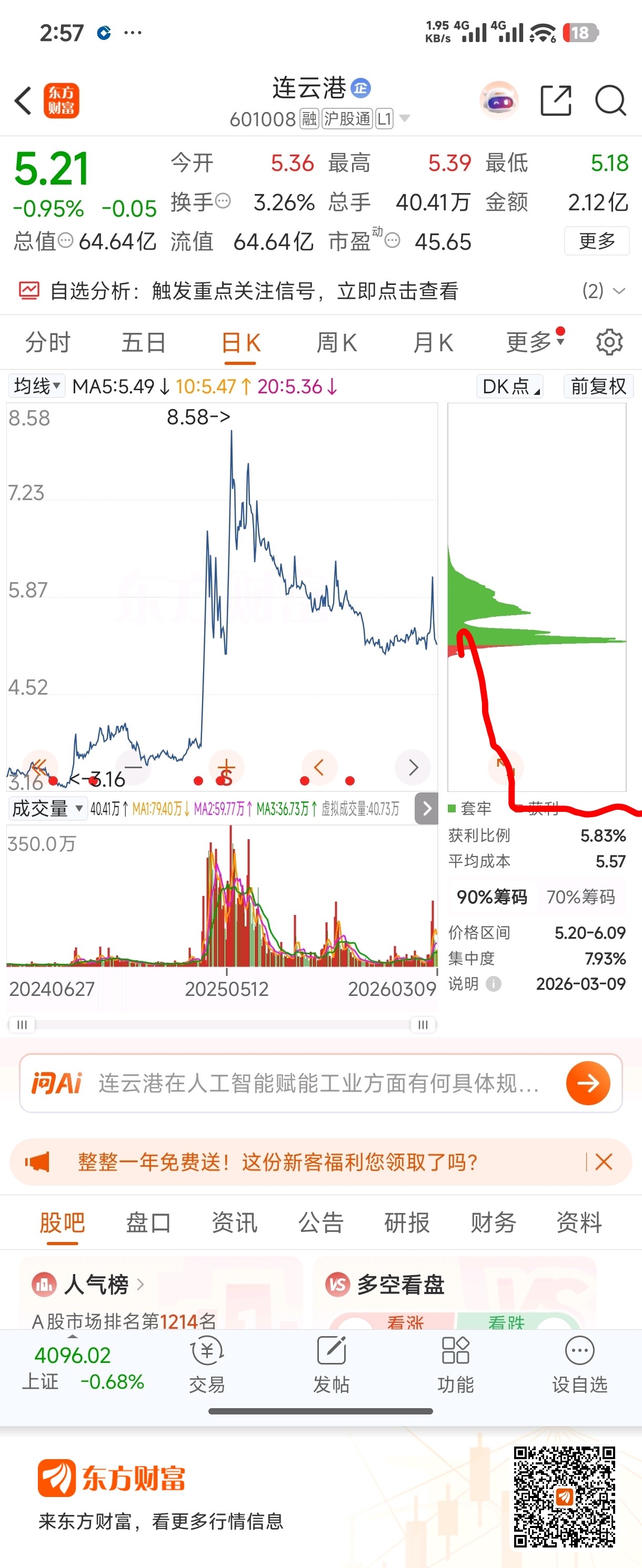 $连云港(SH601008)$ 走势k线画出来了,大家参考呀