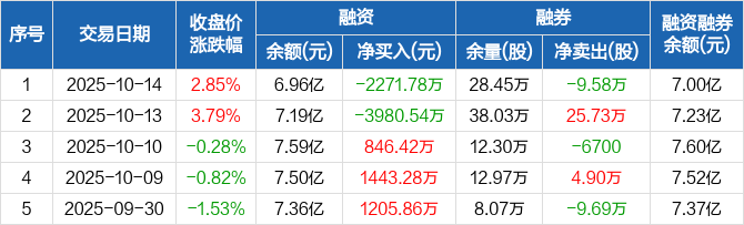 南京银行:融资净偿还2271.78万元,融资余额6.96亿元(10-14)