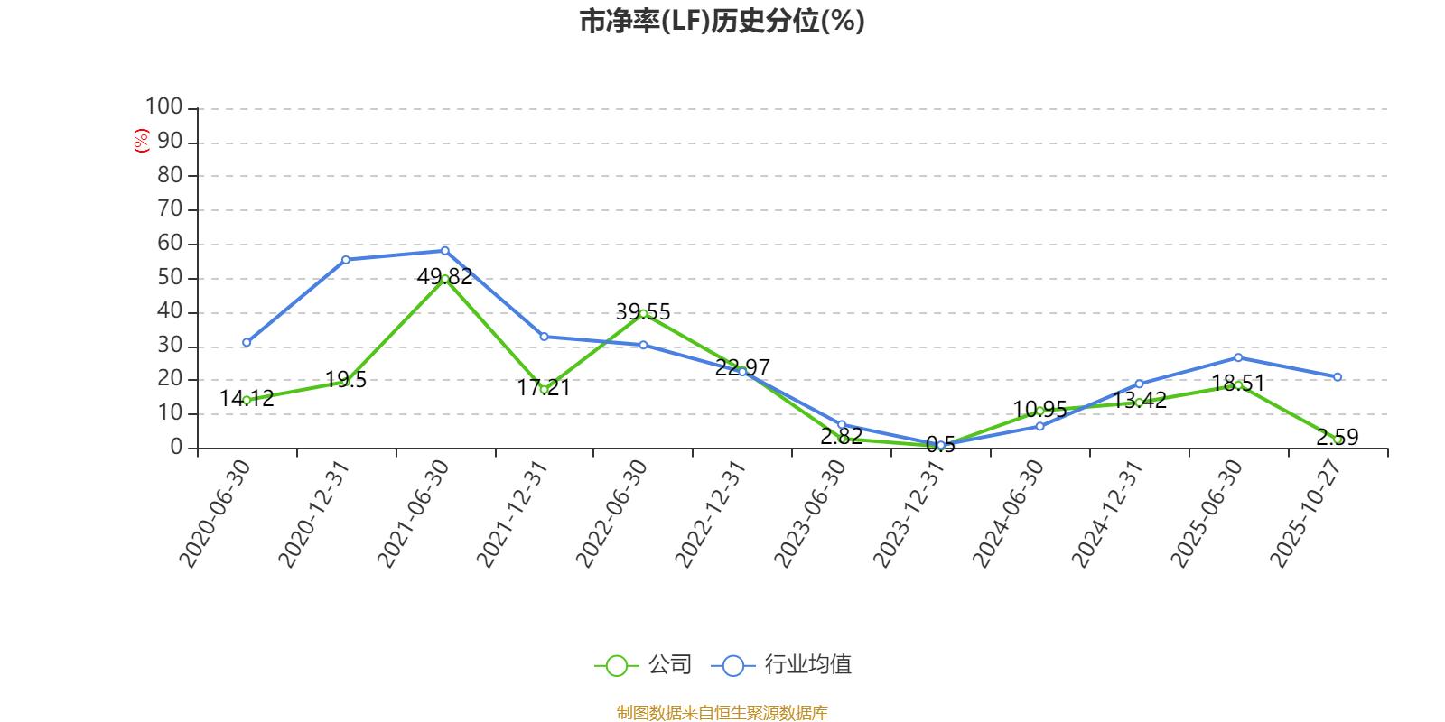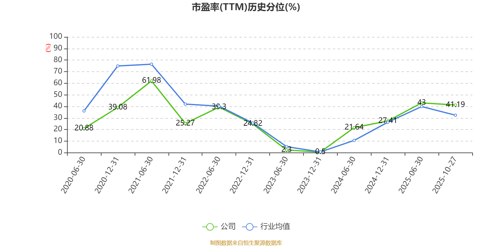 市盈率、市净率为负时,不显示当期分位数,会导致折线图中断。