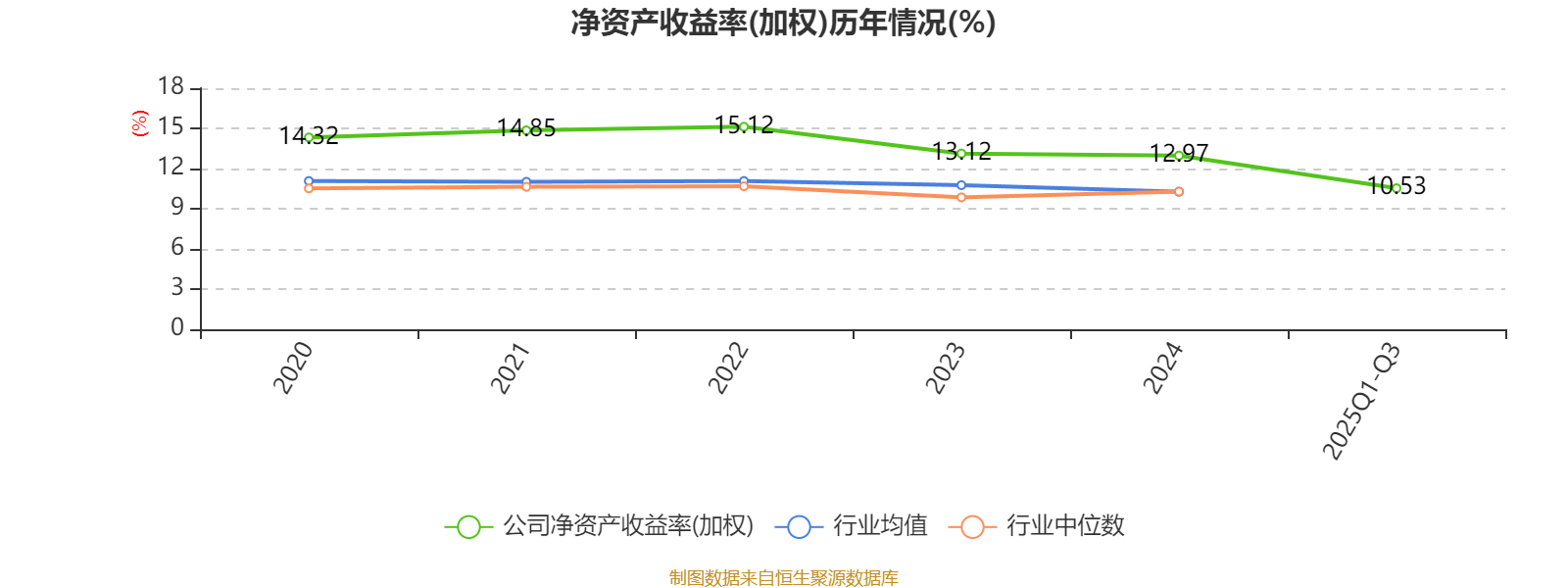 盈利能力方面, 2025年前三季度公司加权平均净资产收益率为10.53%,同比下降0.78个百分点。