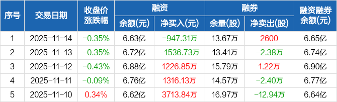 南京银行:融资净偿还947.31万元,融资余额6.63亿元(11-14)