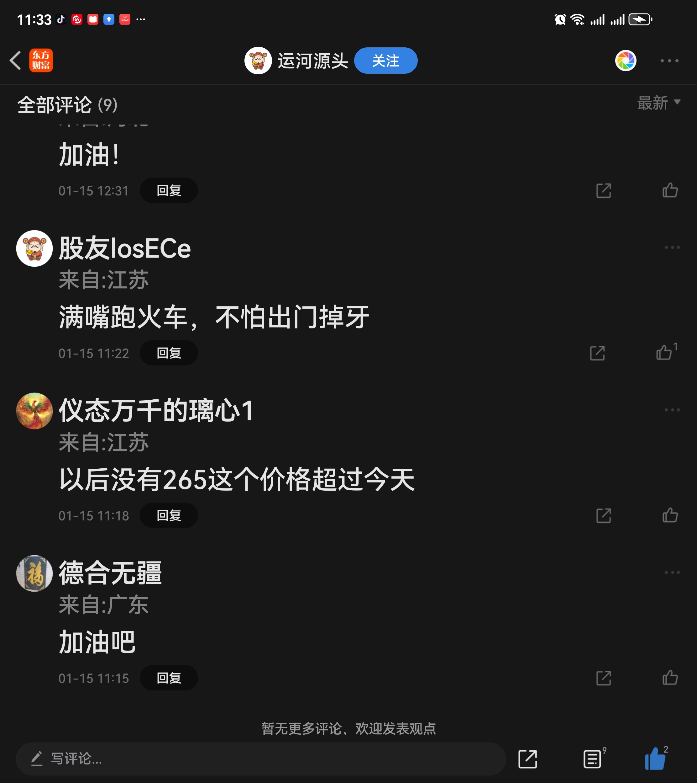 温馨提示: 1.根据《证券法》规定,禁止编造、传播虚假信息或者误导性信息,扰乱证券市场;2.用户在本社区发表的所有资料、言论等仅代表个人观点,与本网站立场无关,不对您构成任何投资建议。用户应基于自己的独立判断,自行决定证券投资并承担相应风险。《东方财富社区管理规定》