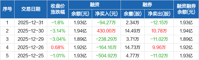 文峰股份:融资净偿还94.27万元,融资余额1.93亿元(12-31)