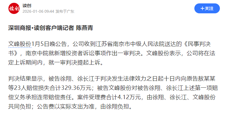 $文峰股份(SH601010)$ 被公司被告,重大利空!