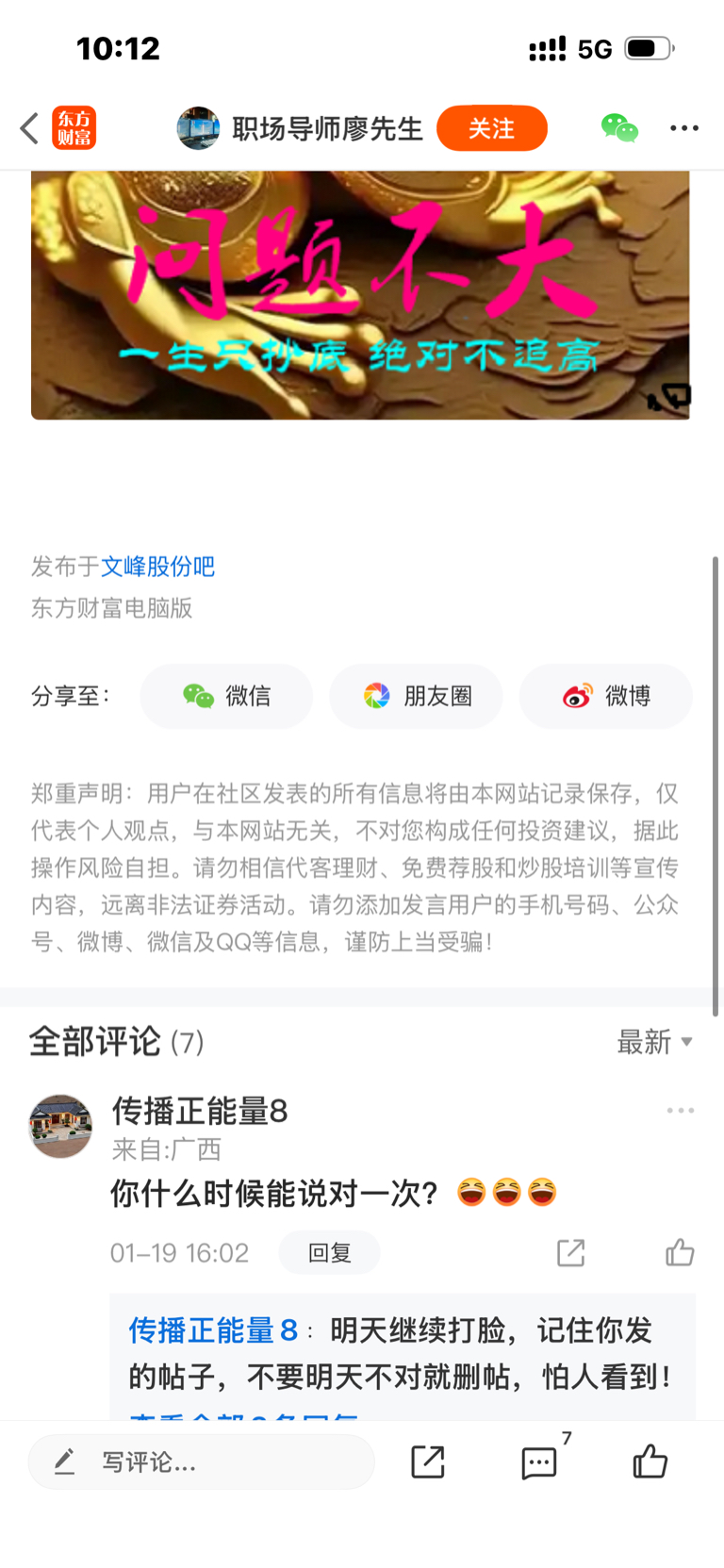 $文峰股份(SH601010)$ 职场廖先生简直是一个二百五,自己一说不对就把自己贴删了,然后拉黑回帖的人。真搞笑,