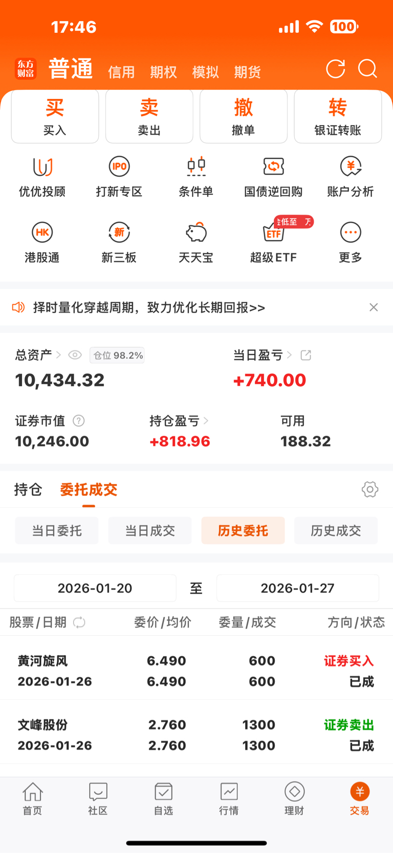 还好昨天把你卖了,买了黄河旋风,我预判太对了