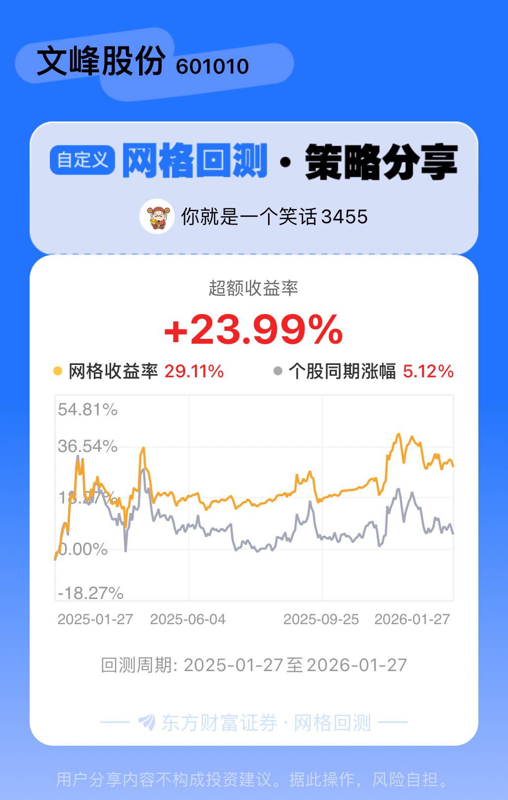 #条件单交流# #网格交易晒单#我使用网格交易回测了最关心的个股,朋友们走过路过看看我的收益~$文峰股份(SH601010)$