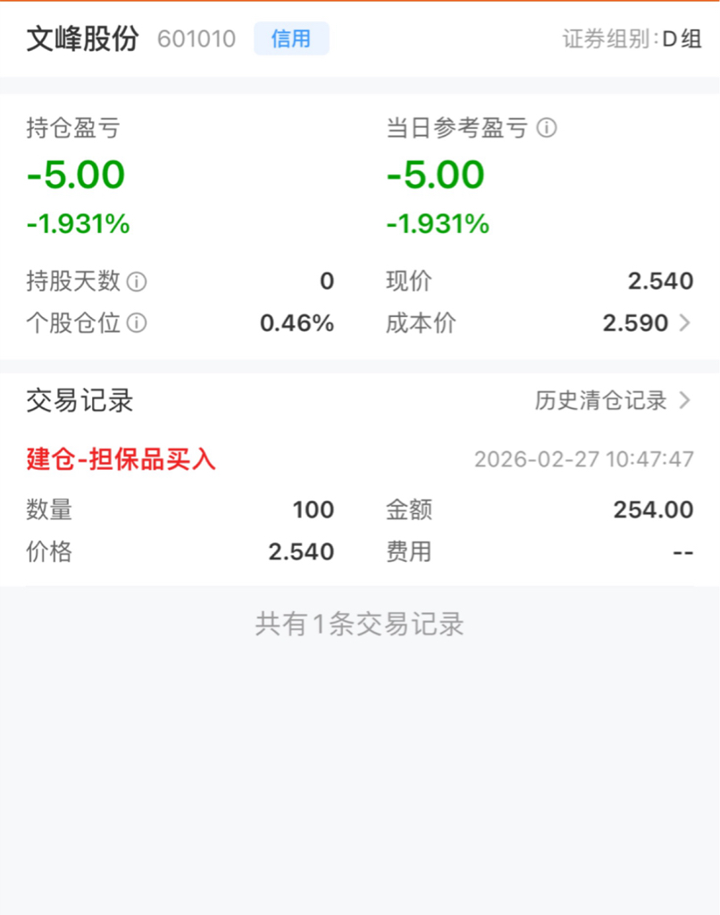 有100万的融资额度,但是文峰你不配,我只给你配100股的仓位,哈哈哈,有本事你
