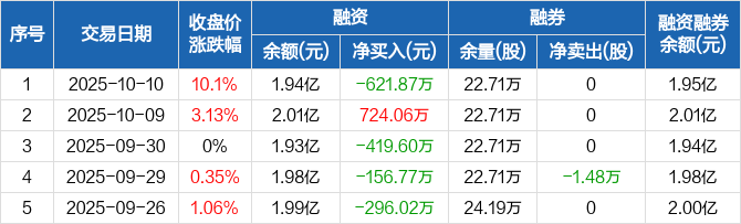 宝泰隆:融资净偿还621.87万元,融资余额1.94亿元(10-10)