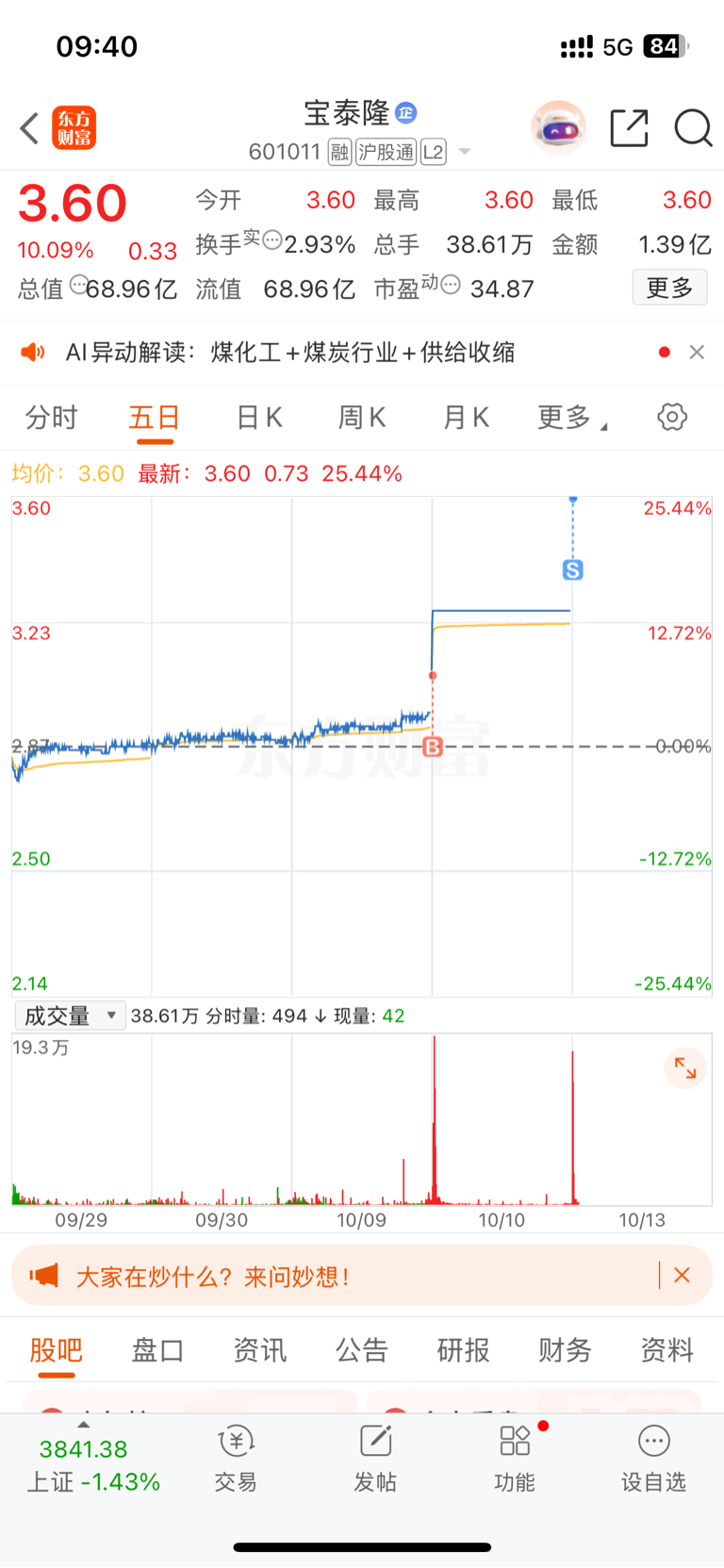 $宝泰隆(SH601011)$