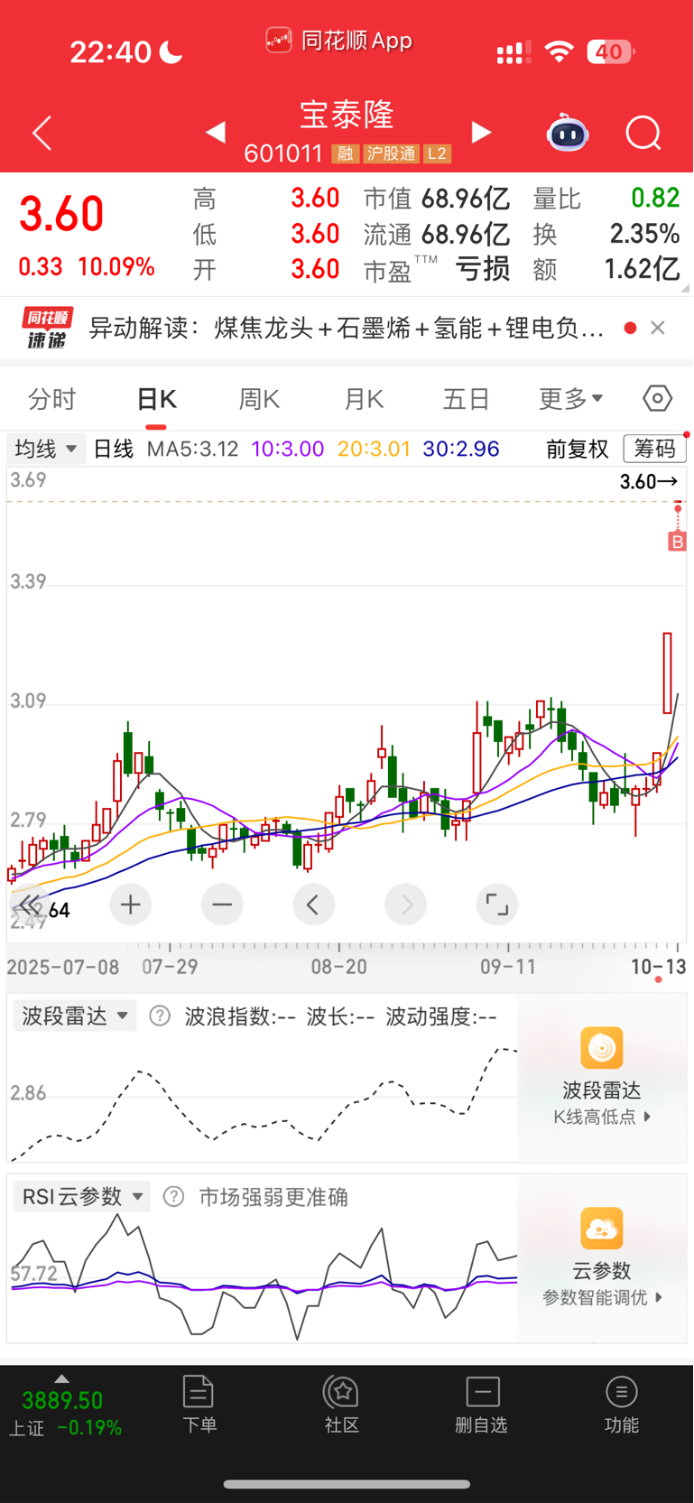 10月13日:买入宝泰隆操作记录请勿跟票,你的赢亏自己负责。