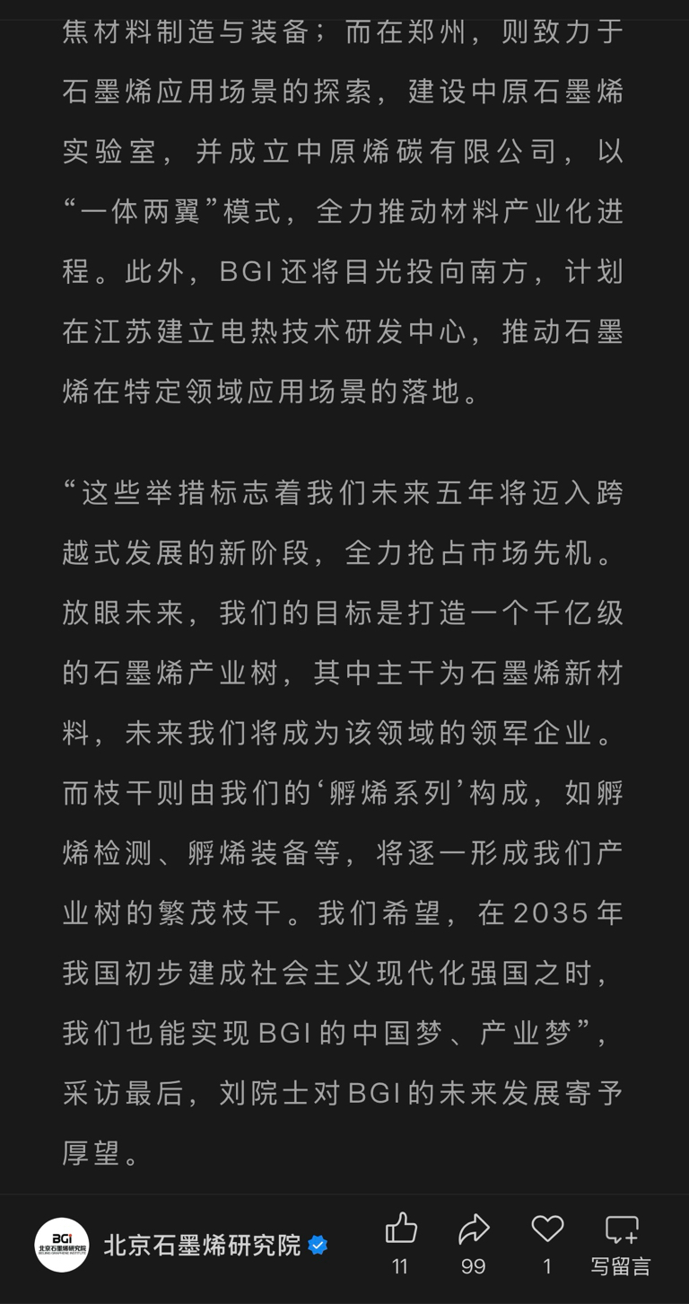 $宝泰隆(SH601011)$ 北京石墨烯研究院真的很强大,宝泰隆比石墨矿还成功的一笔投资。