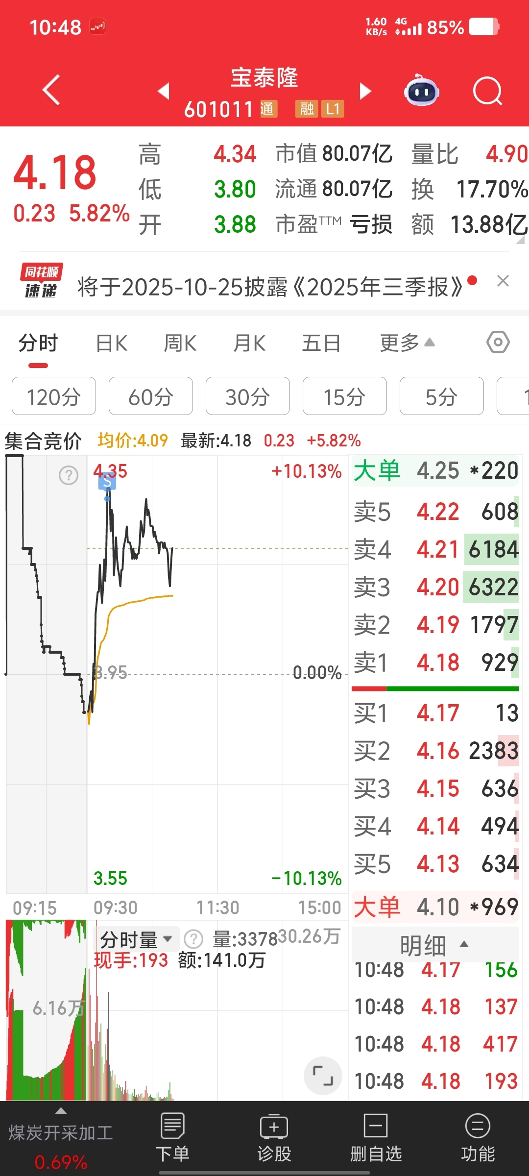 $宝泰隆(SH601011)$ 不是龙头我就走了,炒股不和个股谈恋爱