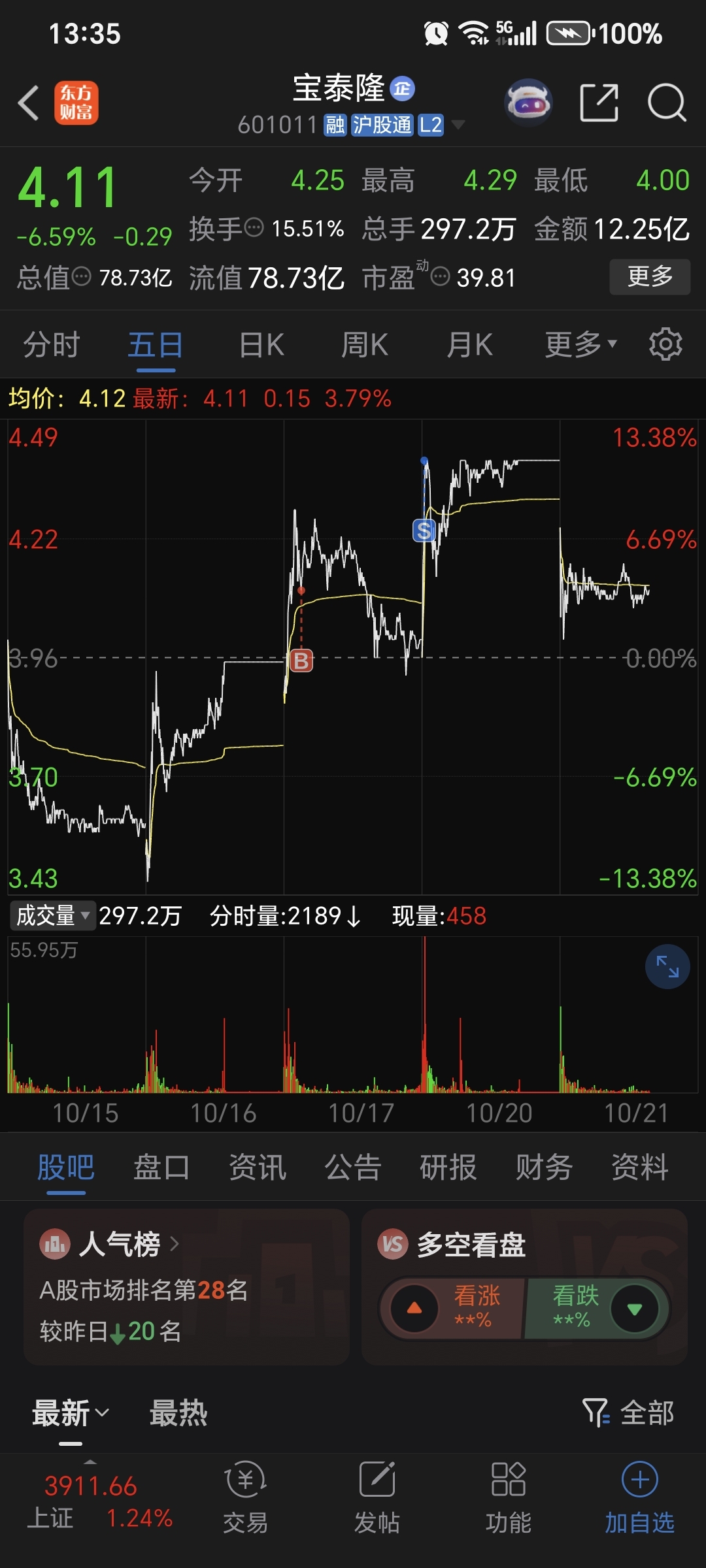 $宝泰隆(SH601011)$ 还好昨天没做t,不然今天又得亏回去