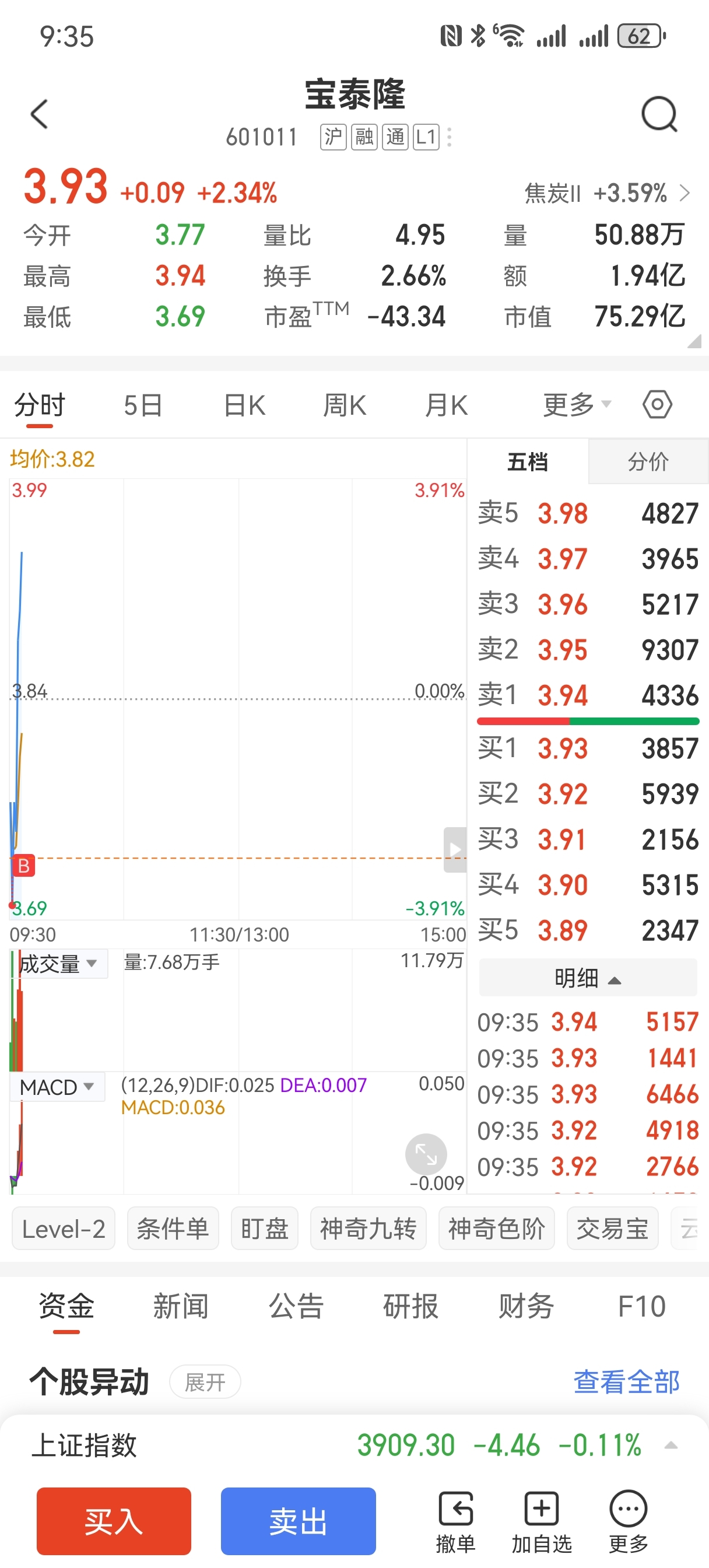$宝泰隆(SH601011)$ 3.7买的抄到底了么