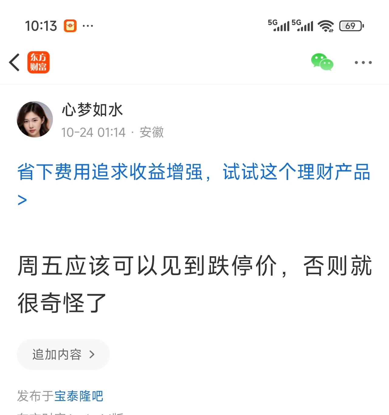 温馨提示: 1.根据《证券法》规定,禁止编造、传播虚假信息或者误导性信息,扰乱证券市场;2.用户在本社区发表的所有资料、言论等仅代表个人观点,与本网站立场无关,不对您构成任何投资建议。用户应基于自己的独立判断,自行决定证券投资并承担相应风险。《东方财富社区管理规定》