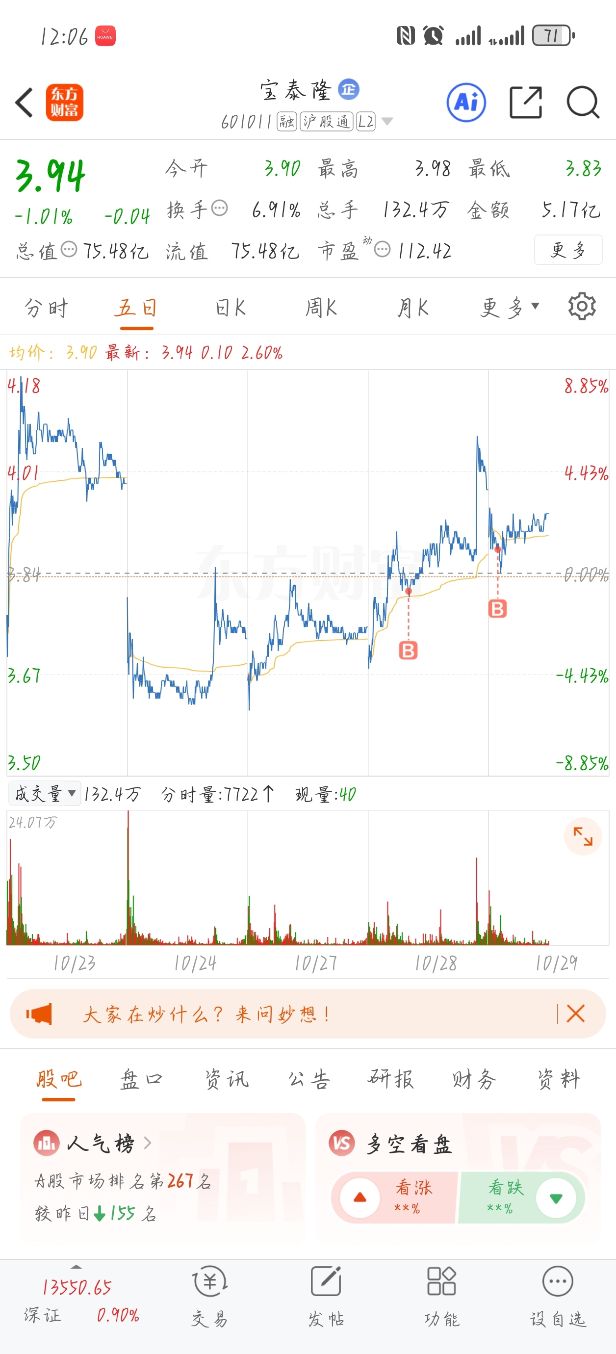$宝泰隆(SH601011)$ 下午板块跳水,不会被埋吧