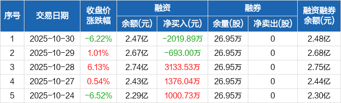 宝泰隆:融资净偿还2019.89万元,融资余额2.47亿元(10-30)