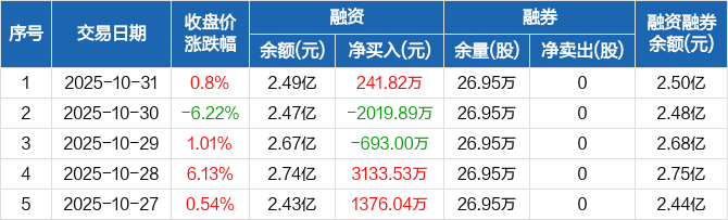 宝泰隆:融资净买入241.82万元,融资余额2.49亿元(10-31)