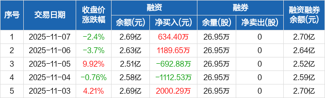 宝泰隆:融资净买入634.4万元,融资余额2.69亿元(11-07)