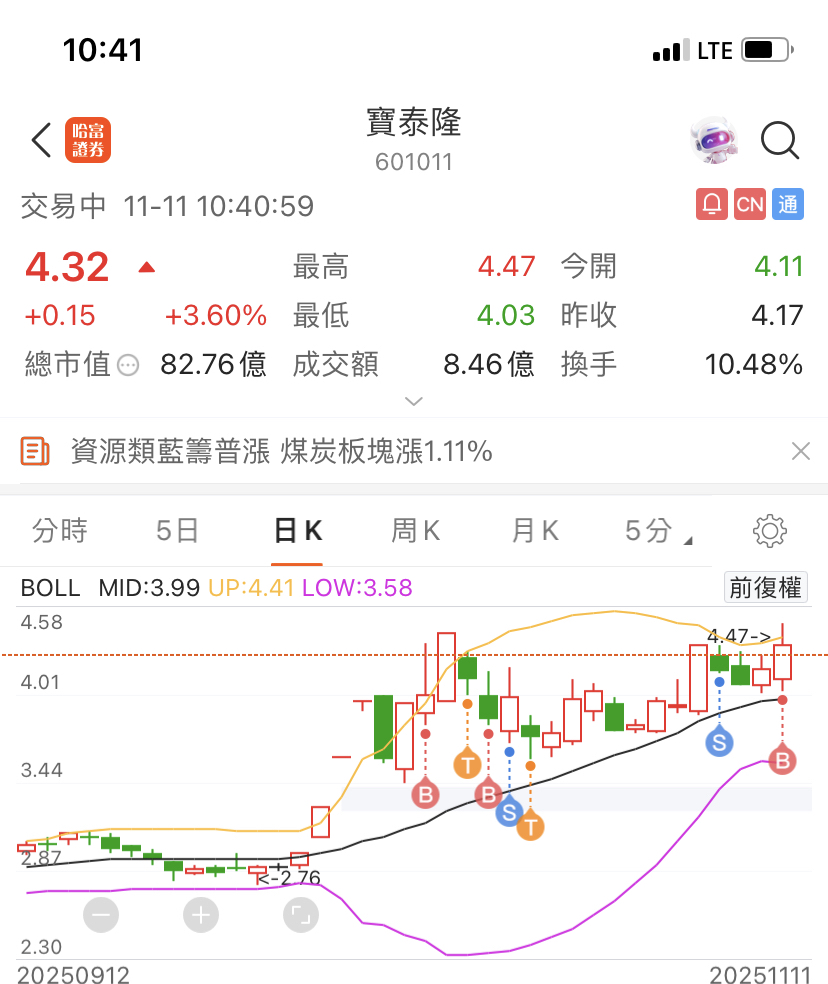 $宝泰隆(SH601011)$ 没出息,主力明显要发力,还在这里做T,我之前已走,也要在这个位置都买回来3分一仓位追,怕卖飞