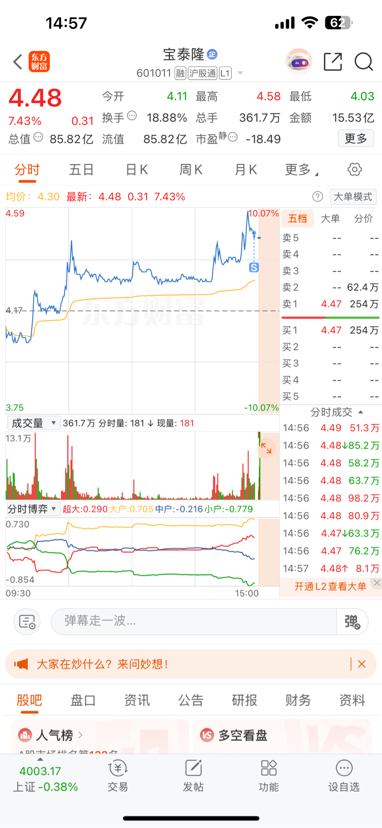 $宝泰隆(SH601011)$ 这他么不封,我走了