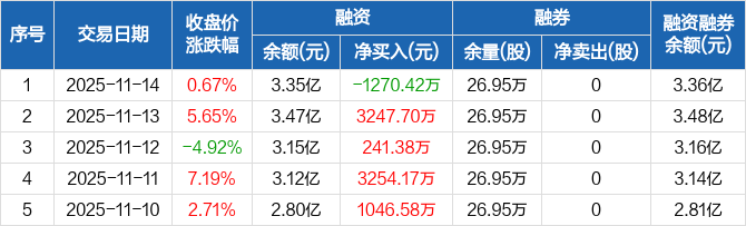 宝泰隆:融资净偿还1270.42万元,融资余额3.35亿元(11-14)