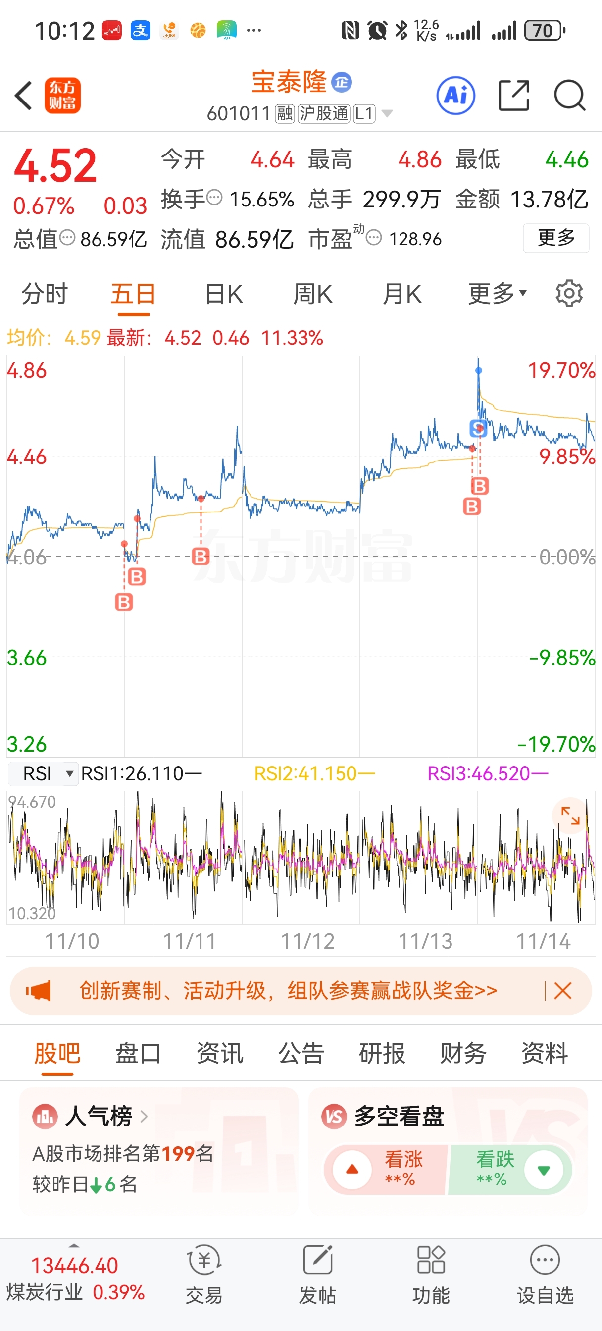 $宝泰隆(SH601011)$ 这票适合低吸高抛